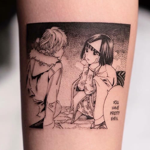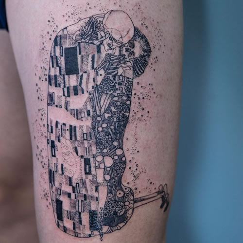 Sus tatuajes de líneas finas exploran escenas que no son tan inocentes como aparentan a primera vista.