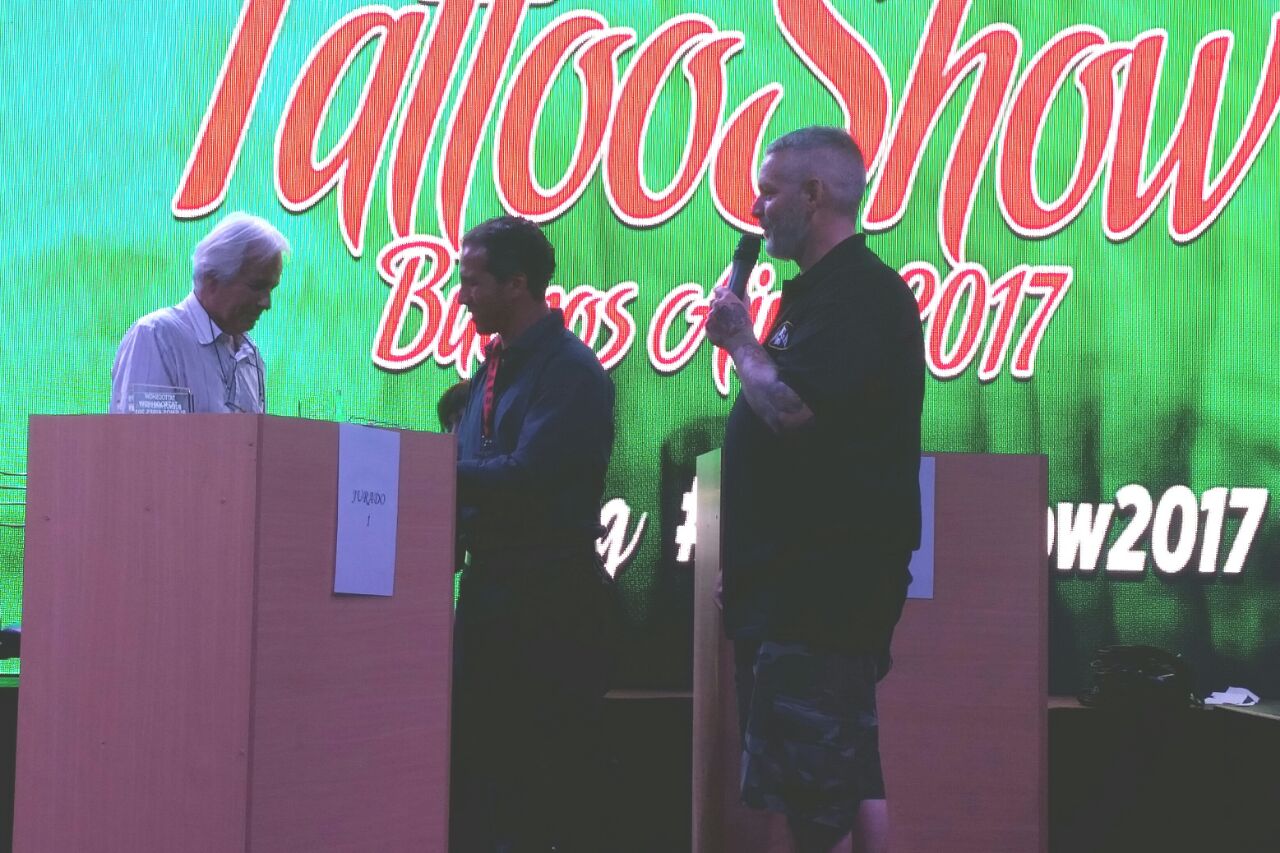 Durante el evento patrocinamos y entregamos premios a la trayectoria de los tres primeros tatuadores argentinos de relevancia internacional: Sergio Sancast, Adolfo "Cacho" Villafañesy Andrés Araoz recibieron sus premios de manos del Dr. Fabián Perez Rivera.